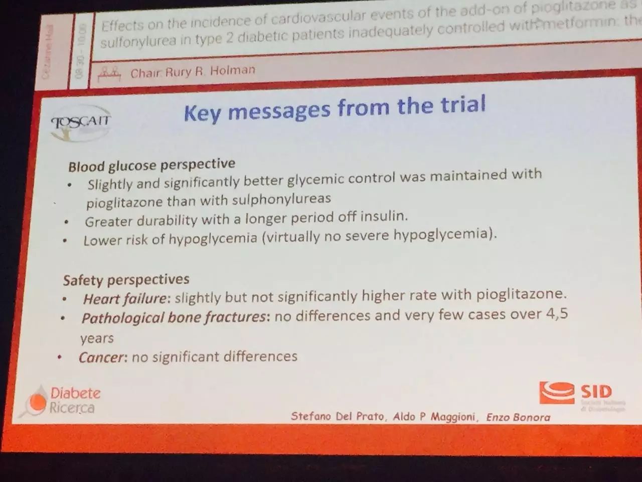 TOSCA IT研究是一項(xiàng)多中心、隨機(jī)研究,評(píng)估在二甲雙胍治療基礎(chǔ)上加用吡格列酮或磺脲類藥物對(duì)2型糖尿病患者心血管事件的長(zhǎng)期影響。